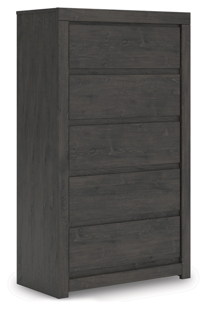 Find serene simplicity in the clean lines and dark neutral tones of this chest of drawers. It’s a sincere approach to modern elegance, giving you high style at a great value. A sleek hardware-less design creates a fuss-free look. Short on storage? This chest's smooth-gliding drawers keep clothes and clutter neatly tucked away.