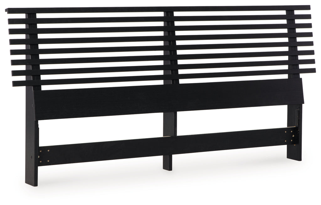 Sophisticated style for the savvy shopper. This panel headboard prioritizes affordable, on-trend design. Its subtle replicated texture recalls the natural beauty of wood, highlighting the slatted styling. And a matte black finish savvily suits different approaches to modern aesthetics. Mix and match with light and bright hues, or pair with other dark tones for a moody look.