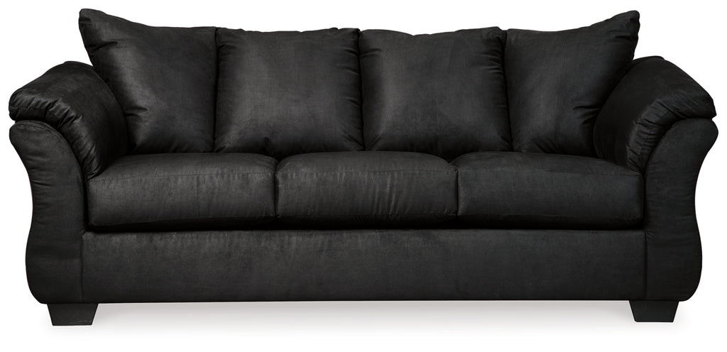 Talk about fine lines and great curves. That’s the beauty of this standout sofa—made to suit your appreciation for clean, contemporary style. A striking flared frame, comfy pillow top armrests and an ultra-soft upholstery that holds up to everyday living complete this fashion statement.