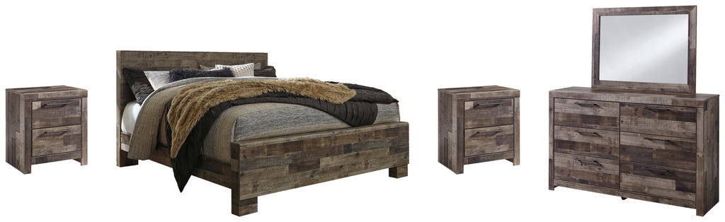 Derekson King Panel Bed with Mirrored Dresser and 2 Nightstands Derekson King Panel Bed with Mirrored Dresser and 2 Nightstands