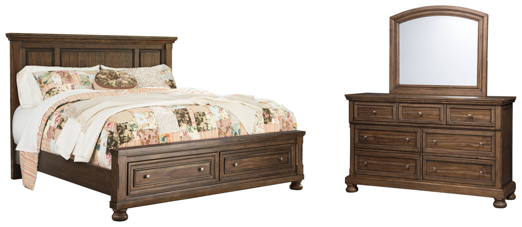Flynnter Queen Panel Bed with 2 Storage Drawers with Mirrored Dresser Flynnter Queen Panel Bed with 2 Storage Drawers with Mirrored Dresser