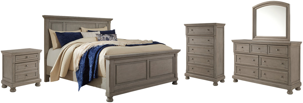 Lettner King Panel Bed with Mirrored Dresser, Chest and Nightstand Lettner King Panel Bed with Mirrored Dresser, Chest and Nightstand