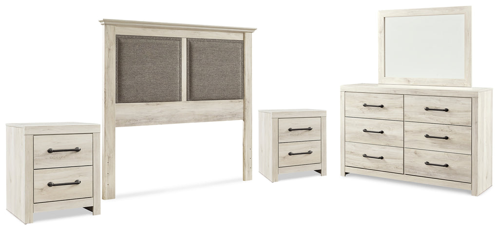 Cambeck King/California King Upholstered Panel Headboard with Mirrored Dresser and 2 Nightstands Cambeck King/California King Upholstered Panel Headboard with Mirrored Dresser and 2 Nightstands