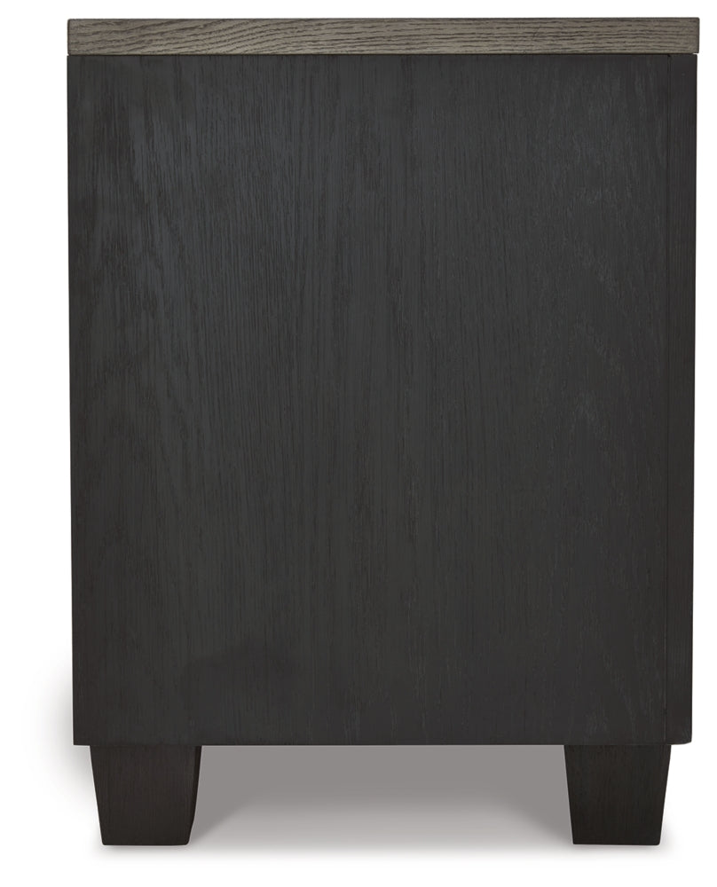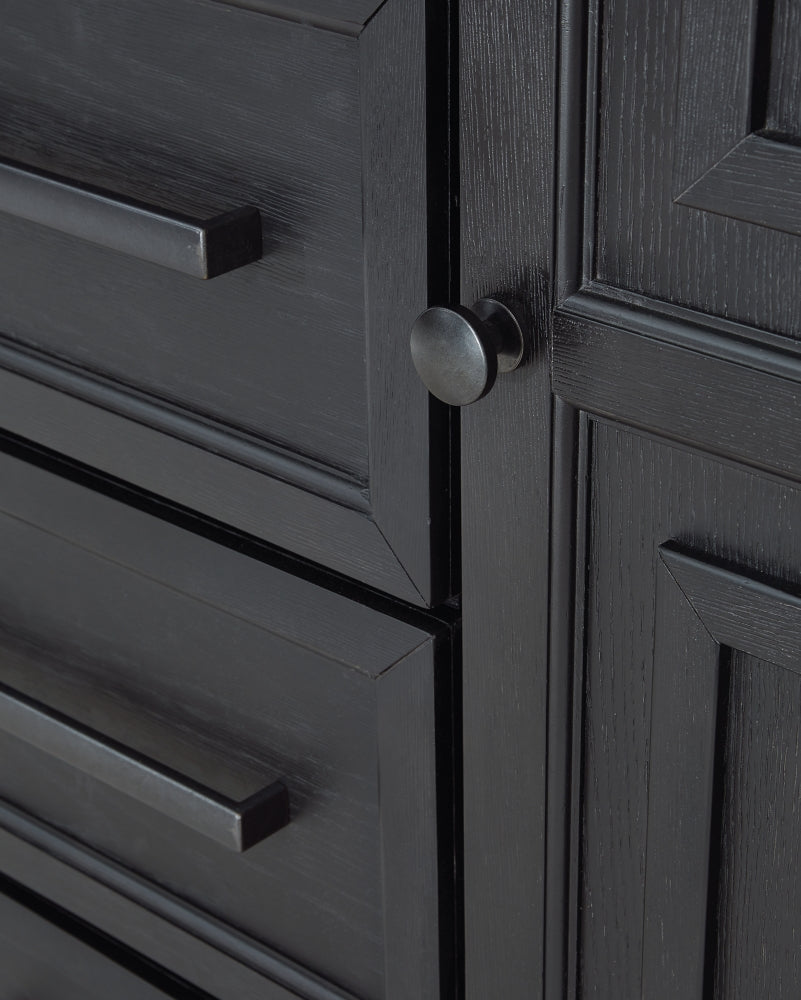 This bedroom package is casual contemporary style simply done right. Its two-tone color scheme features a rich brushed black main color accented with a beautiful dusty grayish brown wood tone. What a chic approach to relaxed yet refined design.