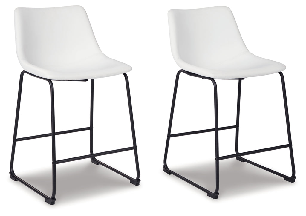 With its distinctive contoured bucket seat and tubular metal base, this bar stool serves up a fresh twist on mid-century inspired style. Contrasting white faux leather upholstery adds to the aesthetic. What a timeless look for eat-in kitchens and casually cool dining rooms.