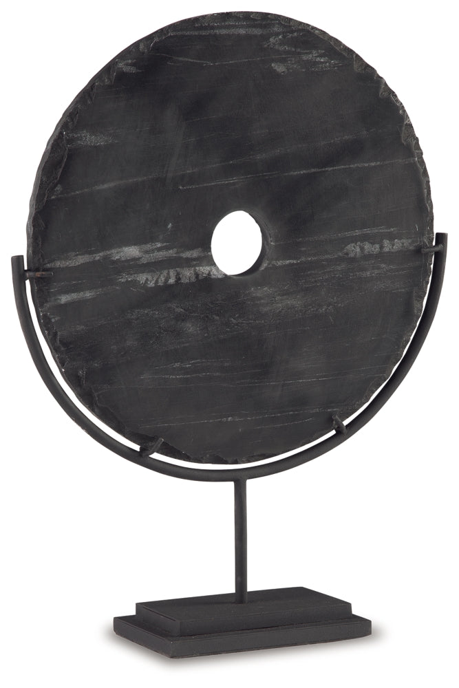 An upscale twist. Like something you’d see in a trendy contemporary art gallery, this black marble disc sculpture on a black metal stand is as elegant as it is eye-catching. What an especially striking entryway piece.