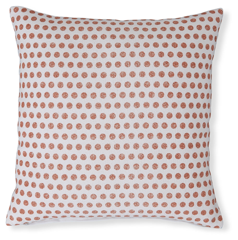 Enhance your at-home accents with the reserved excitement of the Monique pillow. Spice-hued dots decorate a white background, balancing a bold design with classic construction. Pairing a posh look with the plush softness you crave, this pillow makes for a cozy addition to your contemporary space.