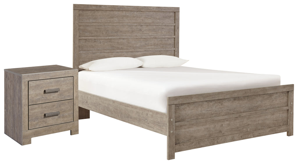 This full panel bed with nightstand entices with a weathered driftwood finish evoking such an ethereal vibe—exactly what you need for your serene master suite. Chunky moulding gracing the bed panels creates a plank-like effect, while clean lines make for a timeless look you’ll love living with for years to come. USB hub on the back of the nightstand keeps devices charged. Mattress and foundation/box spring available, sold separately.