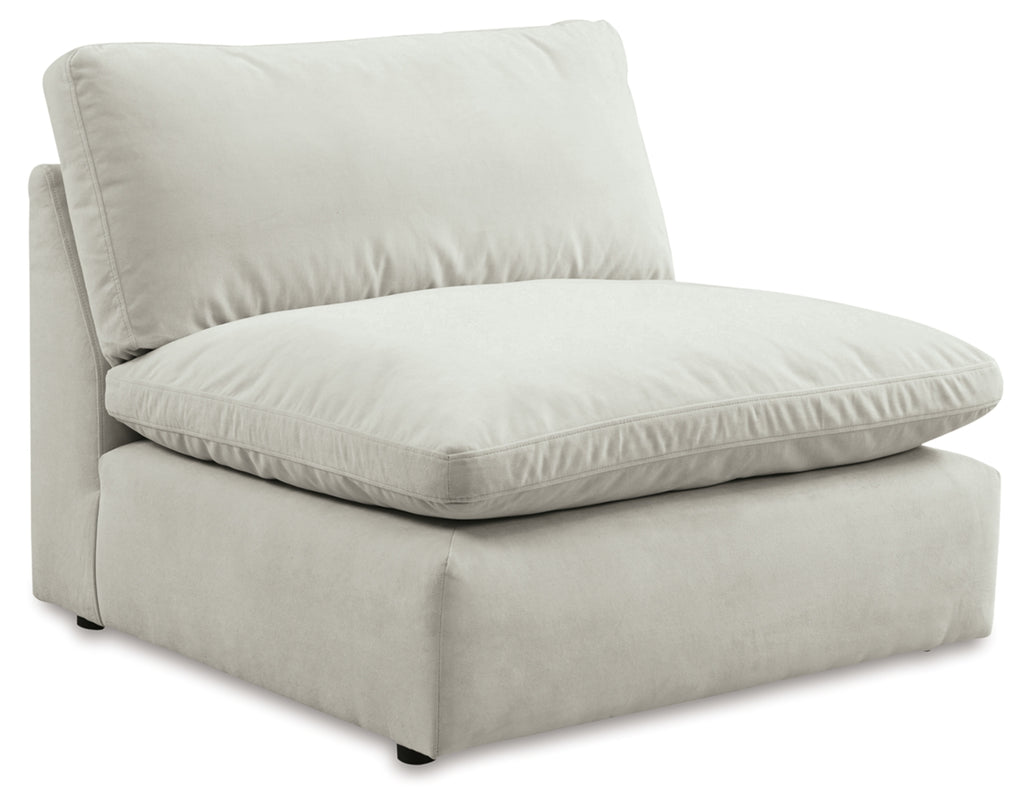 This armless chair is made with polyester upholstery. Fully finished on all sides, it pairs with other items in the series to make a modular sectional.