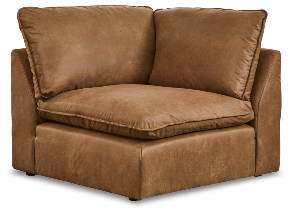 This wedge is made with faux leather upholstery. Fully finished on all sides, it pairs with other items in the series to make a modular sectional.
