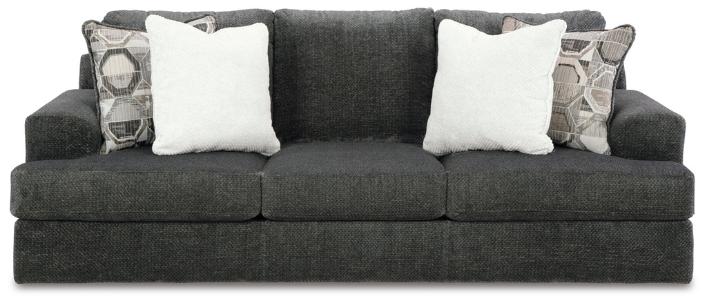 Craving casual refinement? This sofa has you covered. Its decidedly contemporary frame cradles sizable cushions in an ultra-soft neutral hue, lightening the mood in your living room with simple style and everyday comfort. Solid and geometric accent pillows perfect the chic-meets-cozy vibe.