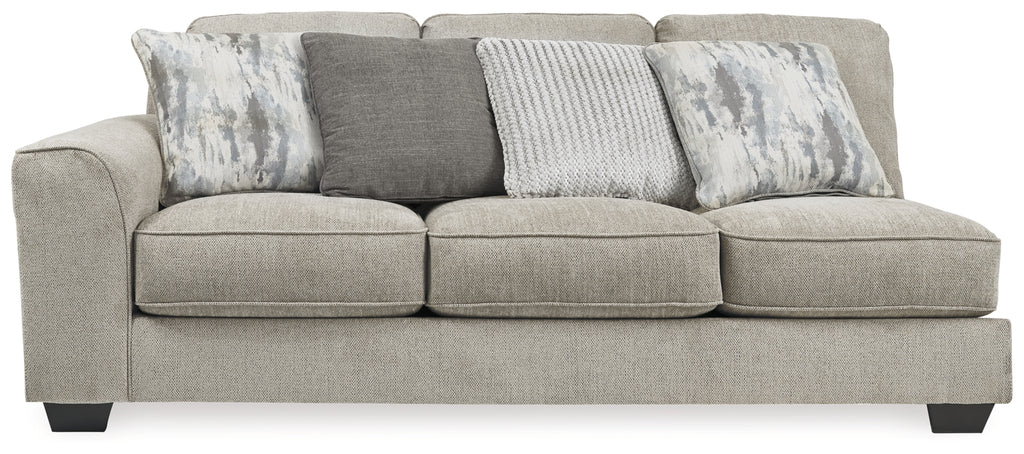 Plush and lovely, this large left-arm facing sofa delights with deep comfort. It’s casually styled with big, roomy seats and modern textured chenille upholstery. You’ll find comfort in its soft back and reversible seat cushions. The 4 decorative pillows in watercolor and fun abstract designs are included to bring unique, modern beauty to the look.