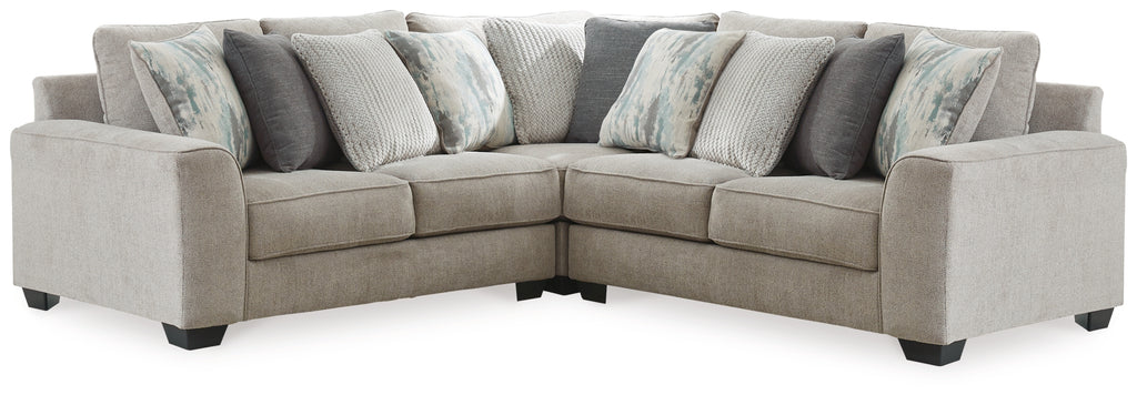 Master the art of cool, clean-lined style—loaded with sumptuous comfort—with this sectional. Plush and posh, the decidedly contemporary seating is dressed to impress with wedge-cut track armrests and box cushions for a minimalist-chic aesthetic. Designer throw pillows in muted hues incorporate texture and an irresistibly soft touch.