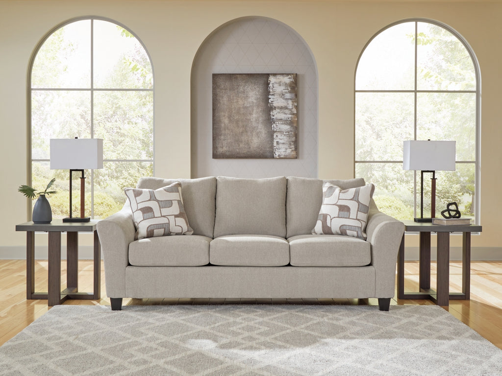 Subtle in color, big on style possibilities. This queen sleeper sofa is a transitional take on everyday comfort. Its soft-to-the-touch upholstery keeps you cozy as you lounge, and the neutral hue is a perfect canvas for adding your own fashionable flair. Hosting guests overnight? It's easy to transform this sofa into a sleeper with the built-in queen mattress.