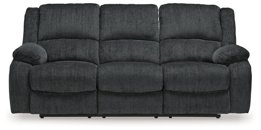 Built for luxury, this power reclining sofa lets you kick back in reliable style. The thick, softly textured chenille upholstery provides a comfy surface on which to lounge. With bustle back construction and thickly cushioned armrests, this piece gives you the dependable support you need to unwind while the handy USB port provides the power to keep your devices going.