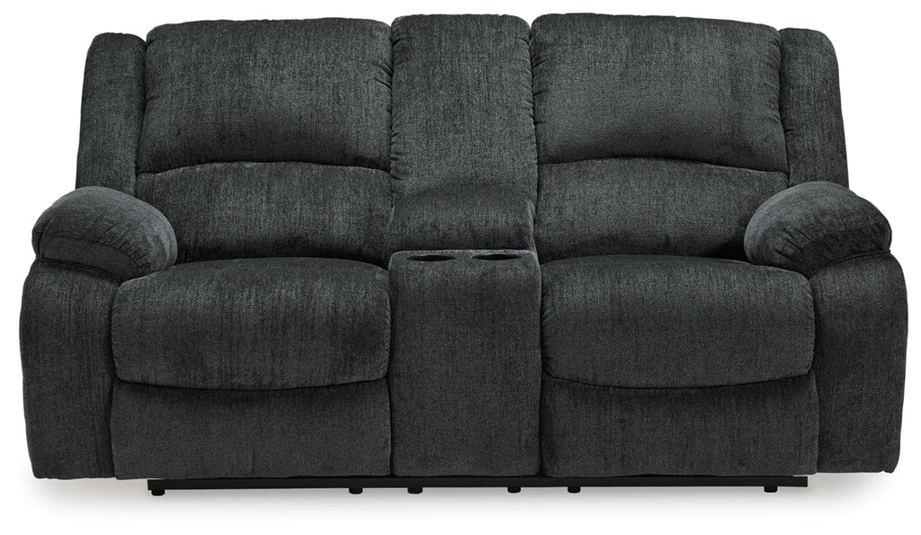 Built for luxury, this reclining loveseat with center console lets you kick back in reliable style. The thick, softly textured chenille upholstery provides a comfy surface on which to lounge. With bustle back construction and thickly cushioned armrests, this piece gives you the dependable support you need to unwind with the convenience of the center console to ease your evening.