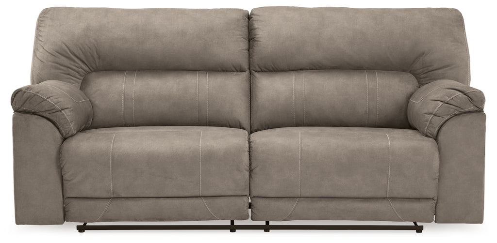 Strike a balance between the indulgent comfort you crave and the cool aesthetic you long for with this reclining power sofa. Offering the cool look of weathered leather, the feel-good slate-tone upholstery takes neutral to new heights. Simply chic divided back tailoring, jumbo stitching and a USB port in the one-touch power control are among the finer details that make all the difference.