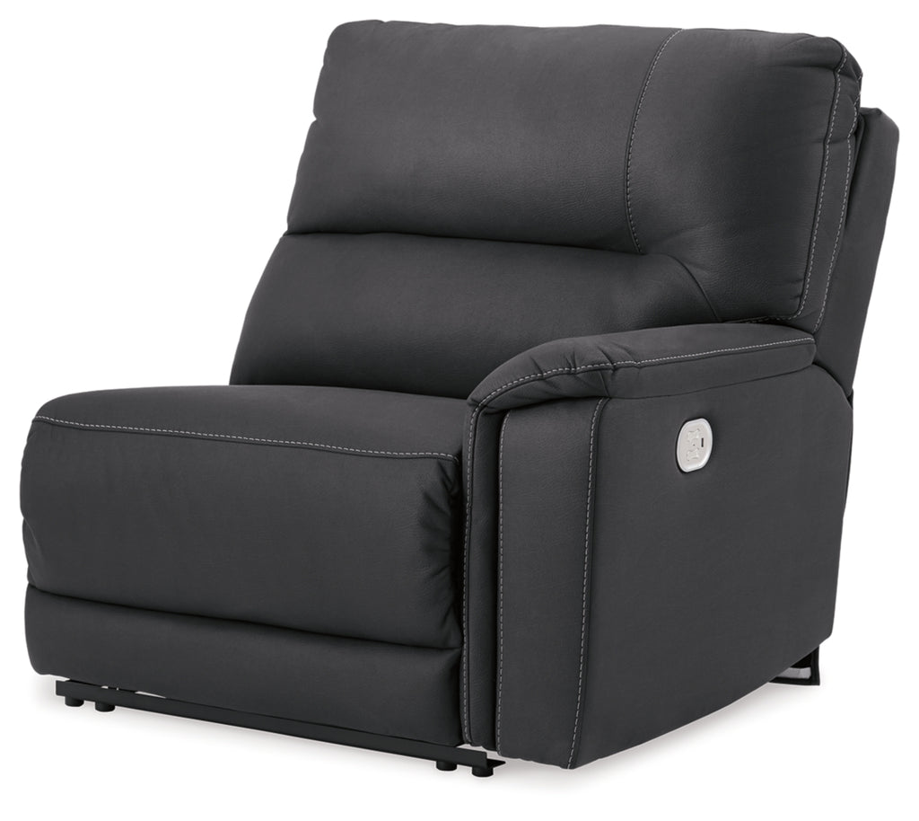 This right-arm facing power recliner is made with polyester/polyurethane (faux leather) upholstery. Pairs with other items in the series to make a sectional.