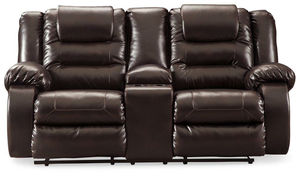 When it comes to comfort, style and value, this faux leather reclining loveseat in chocolate brown rocks. Tailored for feel-good flair, its fashion-forward bustle back design is enhanced with sculpted padding on the headrest for cradling support. Channel cushioning along the sides flows into thick, wrapped pillow top armrests that are truly over the top. And while it might look like you broke the bank, a sumptuously soft leather-like fabric keeps indulgence well within budget.