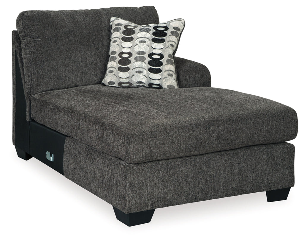 This right-arm facing corner chaise is made with polyester upholstery. Pairs with other items in the series to make a sectional.