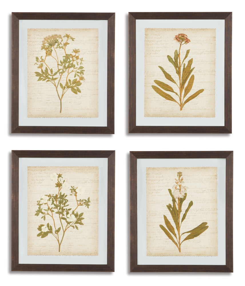 Create your own gallery wall with this 4-piece wall art set. Framed botanical prints are simply striking and such a natural complement in the dining room, kitchen or foyer.