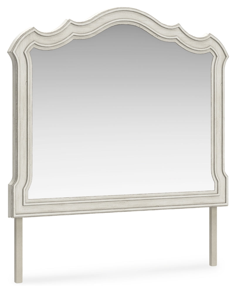 Add a touch of romance to your bedroom with this mirror. Its antiqued white painted finish and serpentine-shaped silhouette details are the picture of easy elegance.