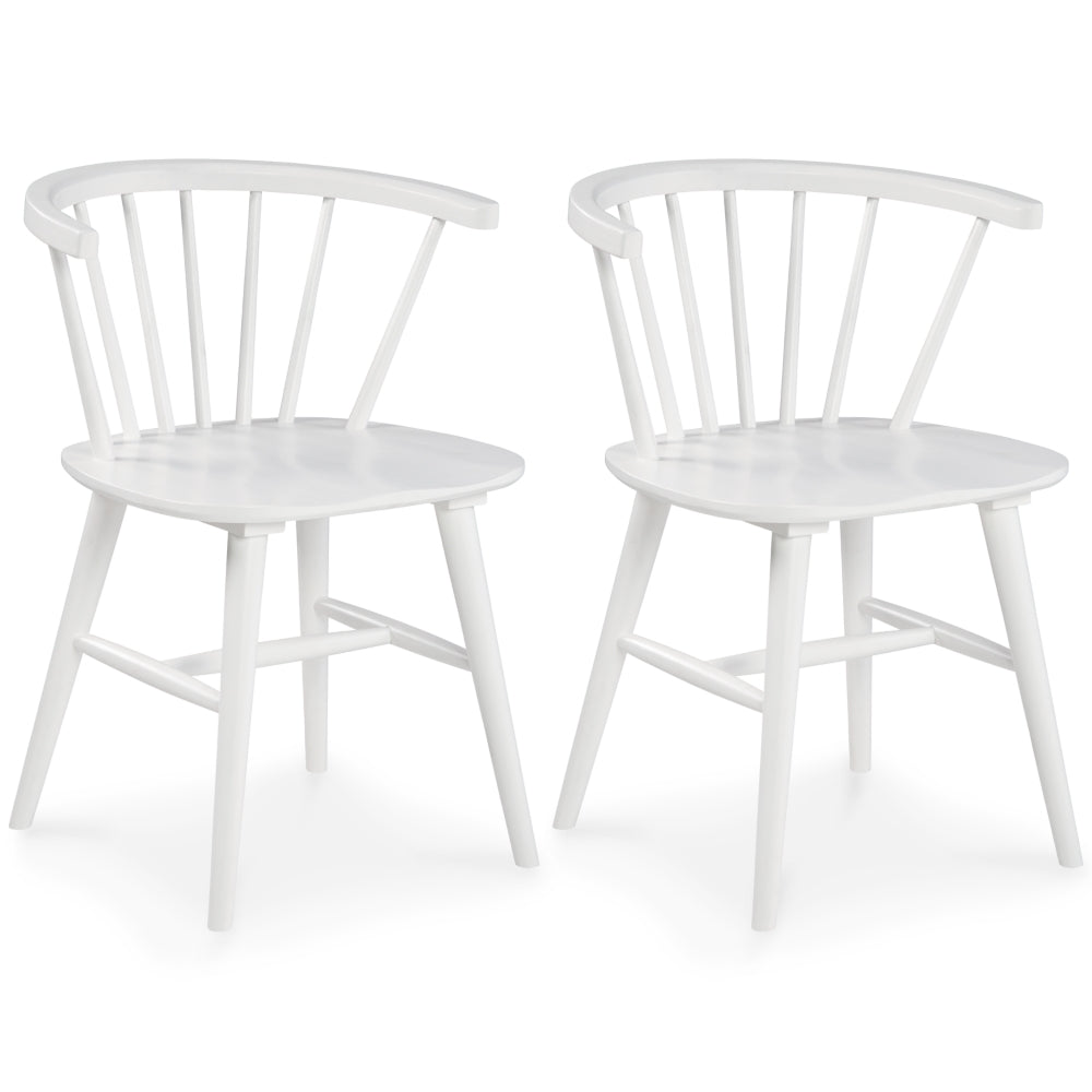 Bring light to your dining area with clean lines and a bright, white finish. The dining room chair sports a low spindle back with turned legs for beautiful simplicity. This functional piece marries minimalism with big style for a delightful combination.