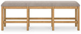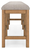 This counter height dining bench is a favorite choice for casual rustic interiors. Offering a great seating alternative, it's your answer for impromptu guests. And the textured upholstered seating? Deliciously versatile and comfortable.
