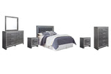 Lodanna Queen/Full Upholstered Panel Headboard Bed with Mirrored Dresser, Chest and 2 Nightstands Lodanna Queen/Full Upholstered Panel Headboard Bed with Mirrored Dresser, Chest and 2 Nightstands