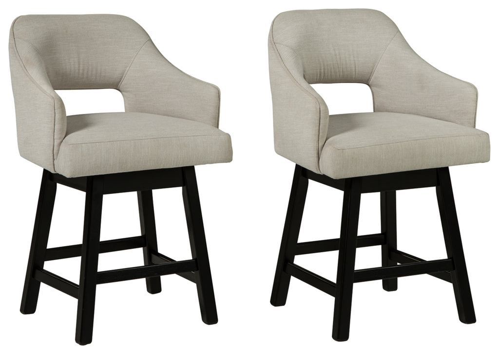 This striking barstool set invites you to take contemporary modern style for a spin. Comfortably cushioned seat, self-returning swivel and contoured back make it beautifully in tune with your needs. Luxurious woven upholstery is a sensational touch.