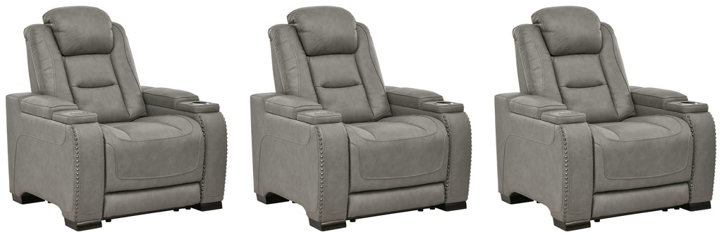 Reserved for him and made for her, this power reclining seating package delivers all the comfort and style you could ask for. Inspired by sports car interiors, the combination leather and faux leather upholstery has a “perforated automotive” treatment for that much more appeal. An advanced one-touch power control puts you in the driver’s seat with an adjustable headrest and lumbar support, plus USB and wireless charging, all at your fingertips. Talk about fully loaded. And with integrated cup holders and hidden storage compartments under the posh, padded armrests, this designer reclining set makes the most of every inch of space.