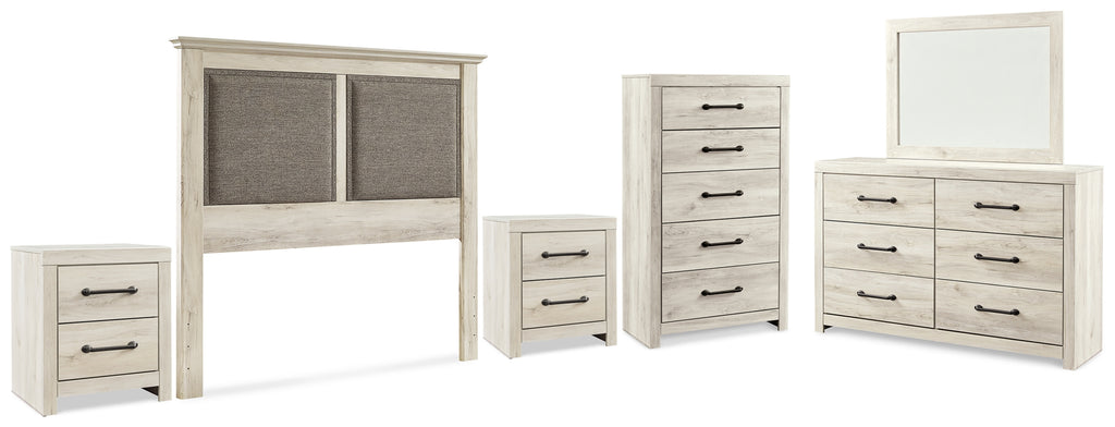 Cambeck King/California King Upholstered Panel Headboard with Mirrored Dresser, Chest and 2 Nightstands Cambeck King/California King Upholstered Panel Headboard with Mirrored Dresser, Chest and 2 Nightstands