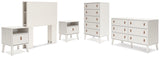Dare to take minimalism to the max. This bedroom package has an air of sleek simplicity thanks to its white painted finish with subtle replicated wood grain. Two sets of faux leather pulls in light brown and gray allow you to customize the drawers to suit your space.